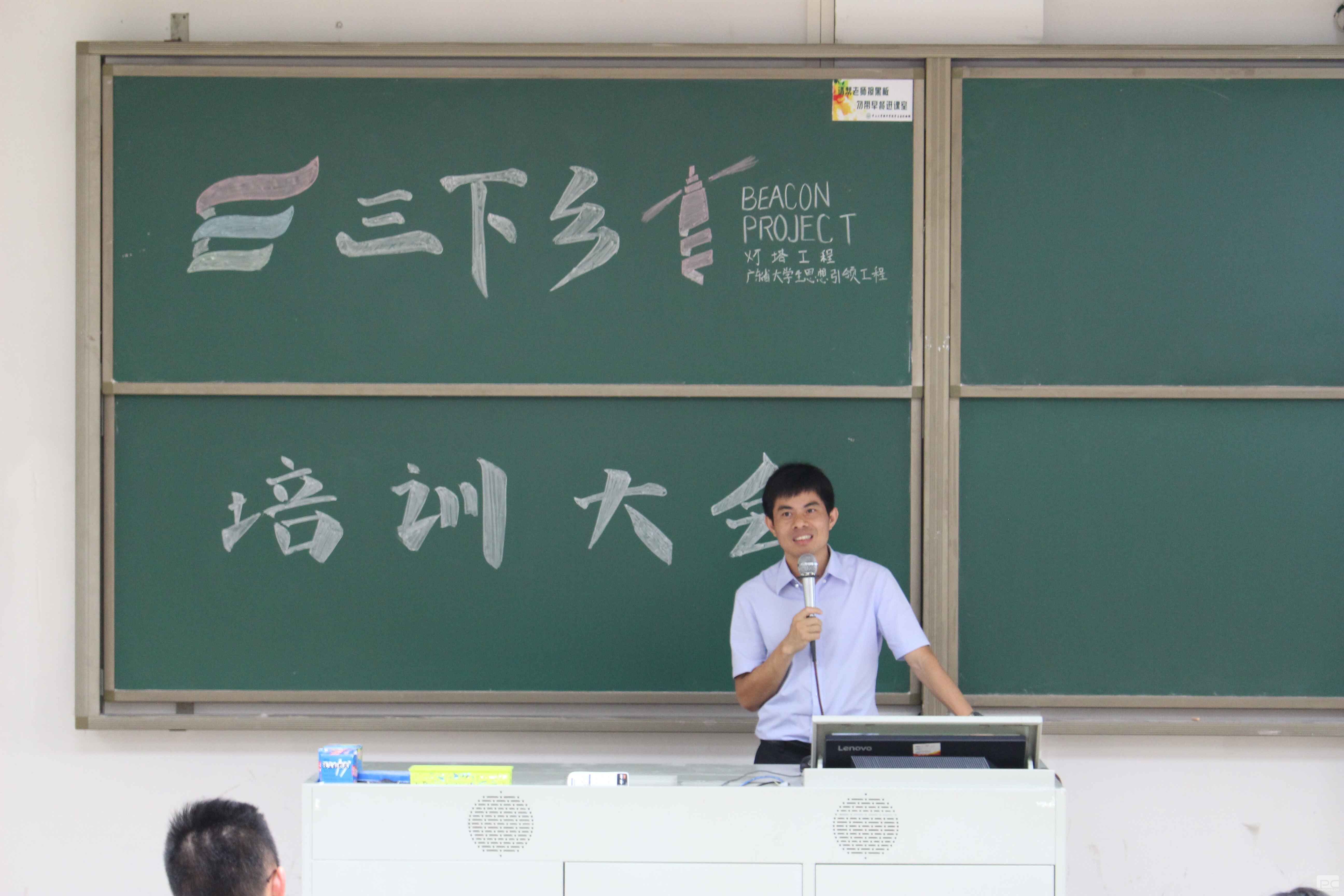 为保证2018年暑期“三下乡”社会实践活动的顺利开展,提高下乡团队的各方面技能,共青团中山大学新华学院委员会于6月14日19:00在东莞校区定静楼2A601举行2018年暑期“三下乡”社会实践活动培训大会。我部副主任徐伟明老师应邀开展了一场主题为“调研报告的撰写方法与常见问题”培训。出席现场的嘉宾还有校团委副书记代亮老师、宣传与新闻中心李波老师、校团委实践部刘佳兴老师以及各二级团委书记、各团队指导老师等。