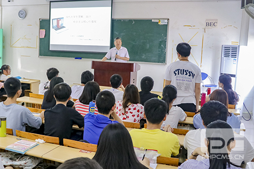 上课铃响前,王董事长和同学们幽默地互动:“今天我选择来这里开讲‘思政第一课’是因为你们是‘熊猫班’,你们读的是‘熊猫牌专业’,而熊猫要特殊保护。”