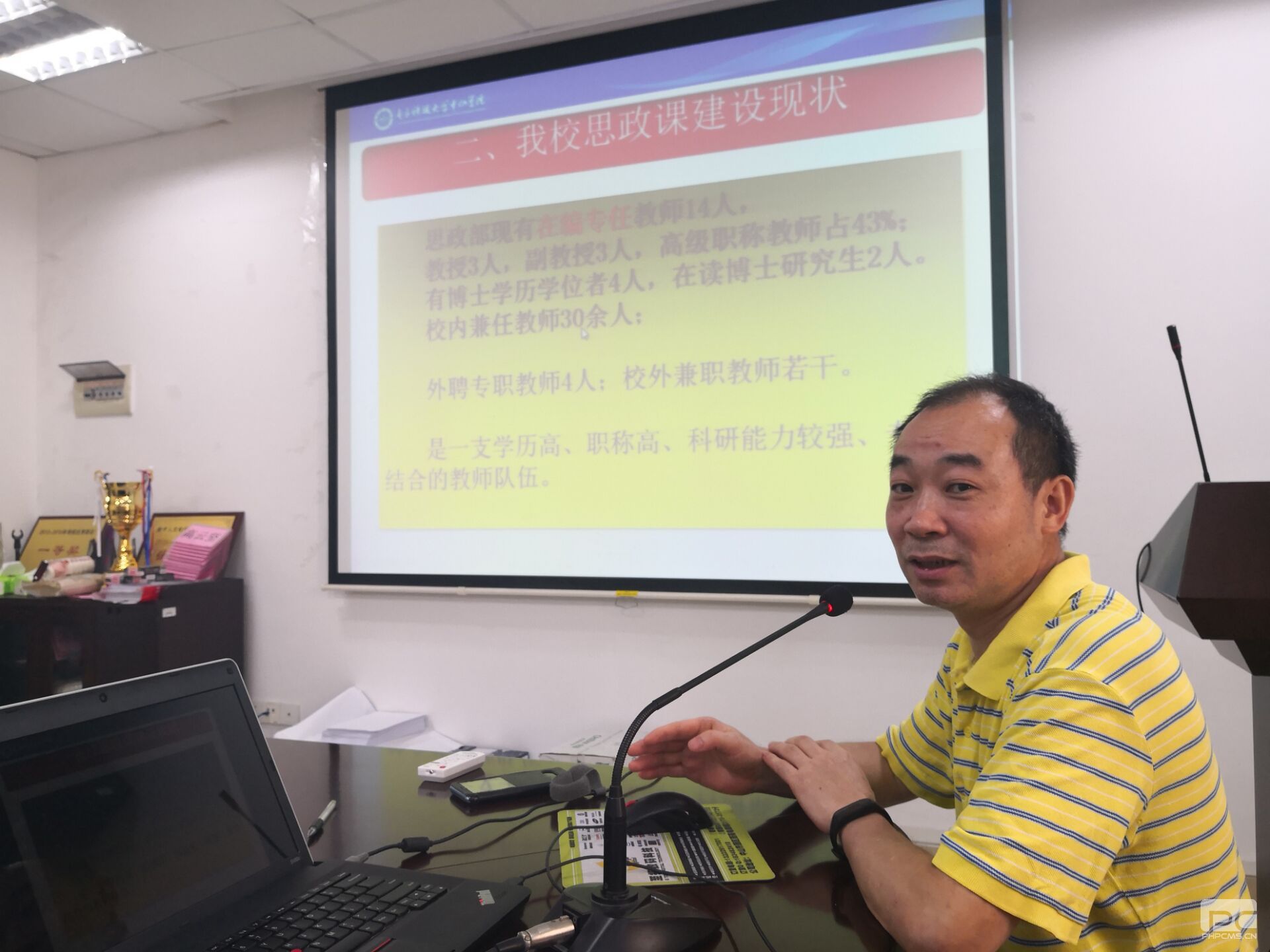 接着,公司叶启绩经理作了发言,感谢申主任一行对太阳成集团tyc151cc教师的热情接待,接着从团队建设、人才培养、课程设置、科研成绩等方面介绍了新华马院的发展历程和主要工作成就。