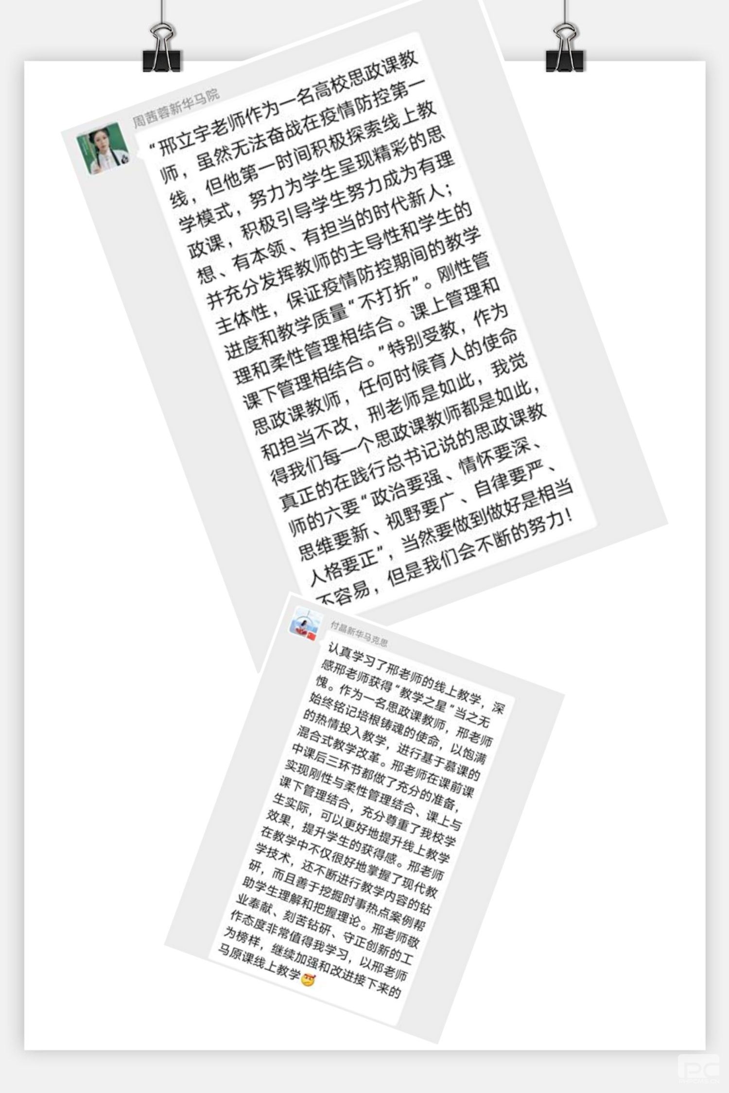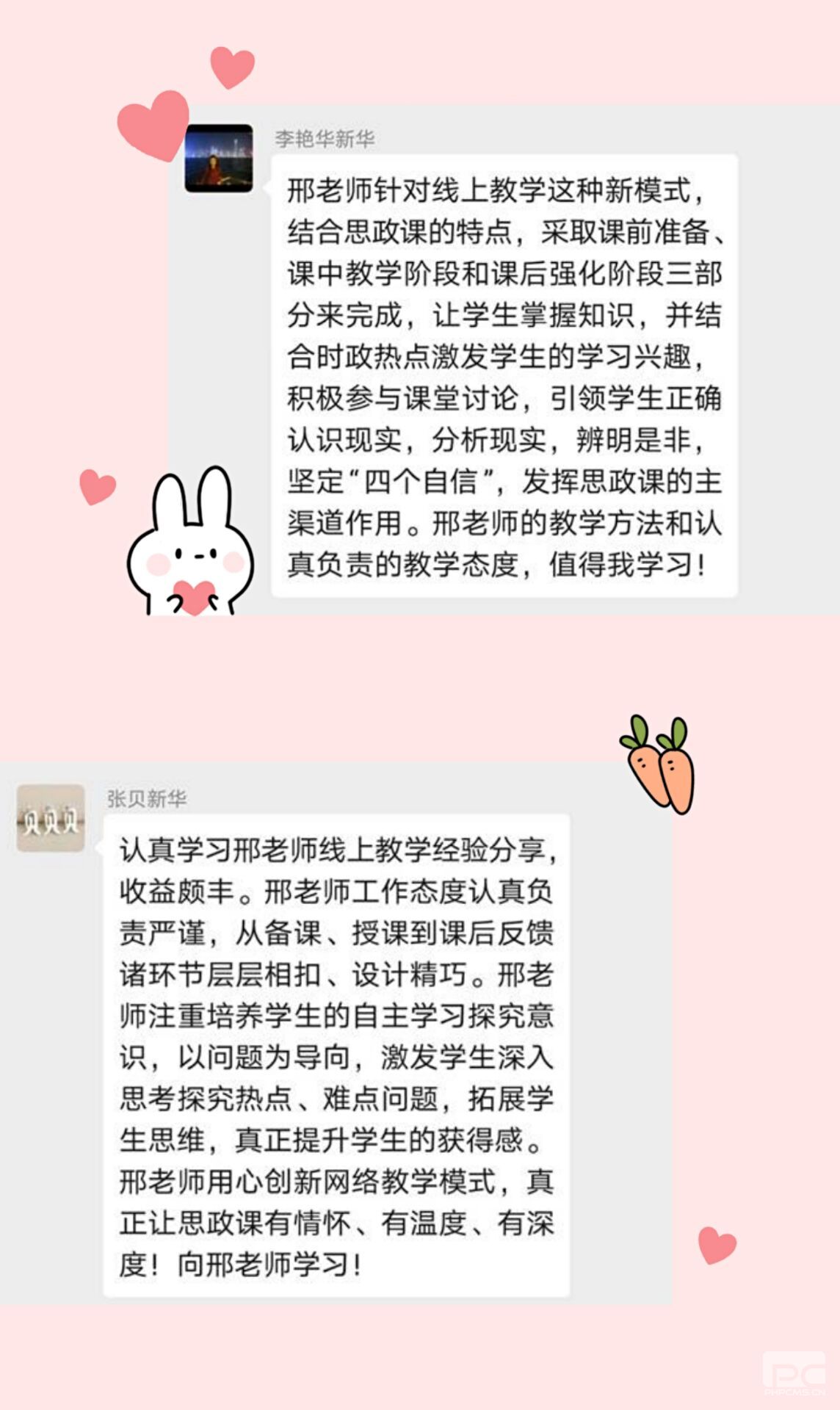 公司刘亚军老师表示,学习完各位优秀教师的教学经验,为他们的认真细致所折服,其实能有这样的教学成果完全是因为他们认真负责的教学态度,这种态度才是最应该学习的。祝艳老师表示,各位老师能够积极探索和创新线上教学新模式,全身心投入到教学中,用实际行动诠释了立德树人和铸魂育人的使命任务。从他们身上我深切体会到一名教师的责任和担当。刘黎老师表示,认真学习了各位老师的线上教学经验,受益匪浅,他们的网络教学方式非常丰富多样化,不仅有优质的慕课视频和课件提供给员工学习,而且充分发挥教师的主导作用,通过直播,讨论,作业等形式将课堂知识教授给员工,激发员工的学习思政课的兴趣,让员工能够更好的消化吸收知识,完成网络教学的教学目的。作为一名新教师,更要学习这种认真负责,刻苦钻研的精神,提升自己的教学水平,才能更好的教导员工。赵芸老师表示,通过学习各位老师的教学经验分享,收获颇丰。首先,邢老师的对待教学工作严谨负责的态度值得我学习;其次,邢老师在教学过程中融入伟人故事、红色故事等专题教学和案例教学,以故事激发员工兴趣,活跃课堂气氛,使员工更容易更深刻的掌握课堂知识;最后,邢老师在课上设置了精确的时间点和任务点,课下管理则是对员工的评论区回复和作业进行及时的评阅和批改,及时指出员工在完成课后任务中存在的问题。这种课上管理与课下管理相结合的方式来指导员工,巩固教学成果,也让我受益匪浅。