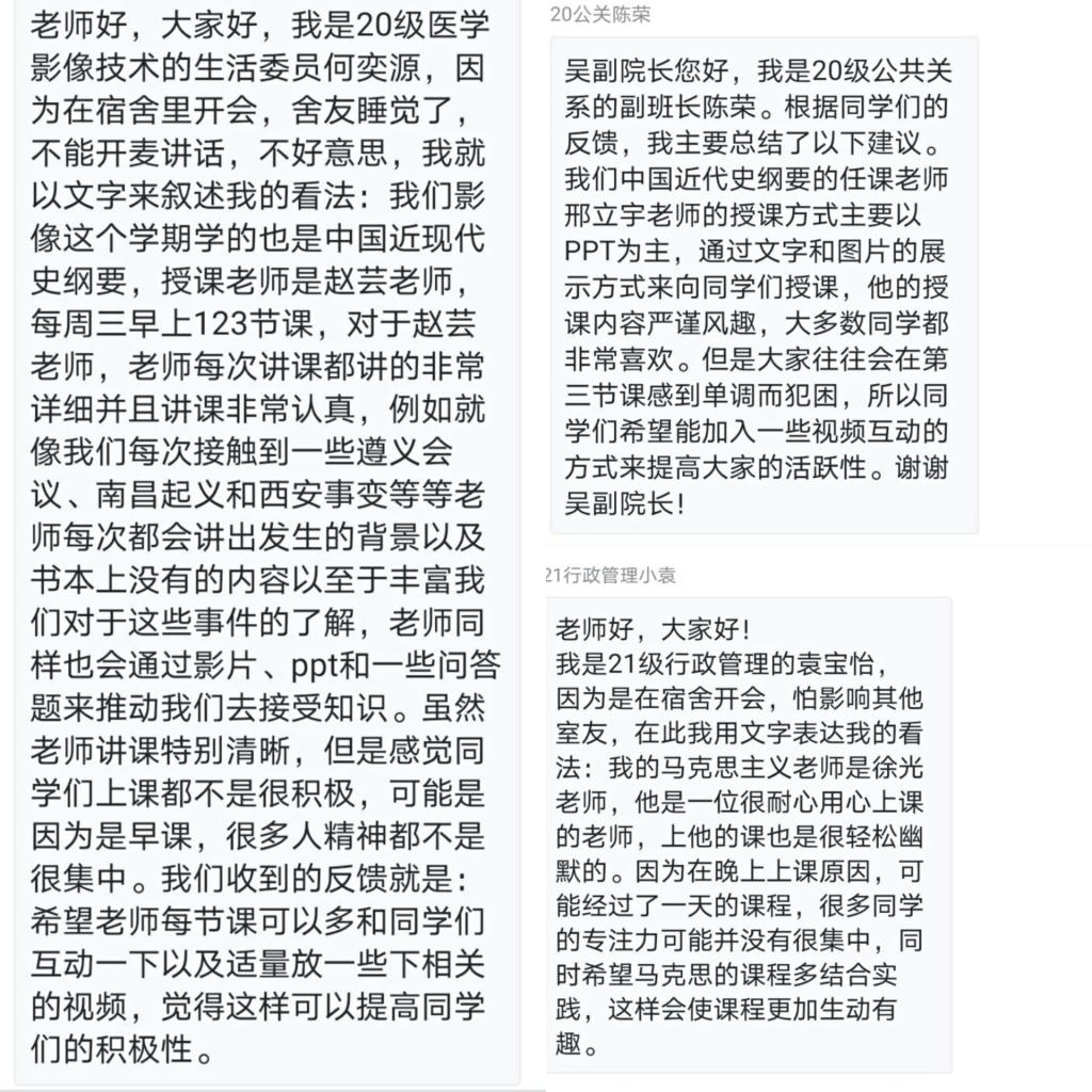 部分同学通过聊天留言区发表意见