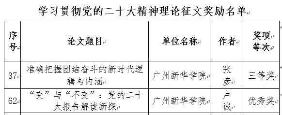 为深入学习宣传贯彻党的二十大精神,发现培养一批优秀青年学者,营造浓厚理论学习氛围,广东省习近平新时代中国特色社会主义思想研究中心开展了学习贯彻党的二十大精神青年学者论坛征文活动,公司张彦老师获得三等奖,卢诚老师获得优秀奖。