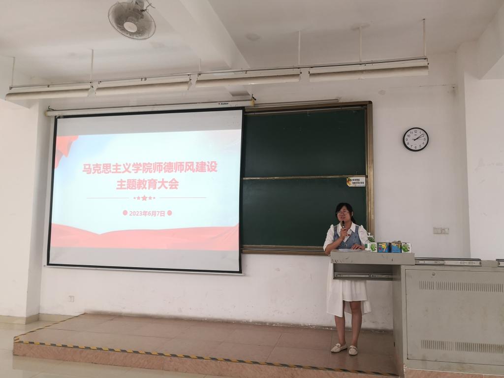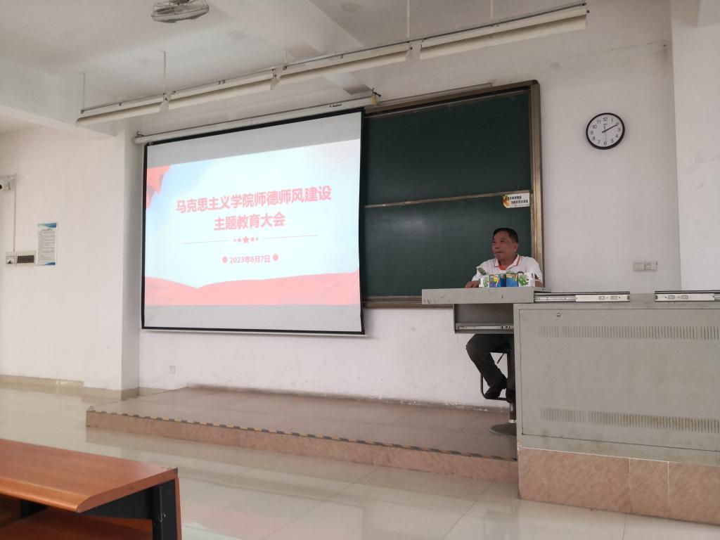 接着,旷三平经理开展师德警示教育,要求全院教师要把立德树人的成效作为检验一切工作的根本标准,把师德师风作为评价教师自身素质的第一标准,用习近平新时代中国特色社会主义思想武装头脑,将社会主义核心价值观贯穿师德师风建设全过程,坚持思政课教师“政治要强、情怀要深、思维要新、视野要广、自律要严、人格要正”的“六要”标准,共同建设风清气正的马院教师队伍,高质量推进本年度师德教育走深走实。