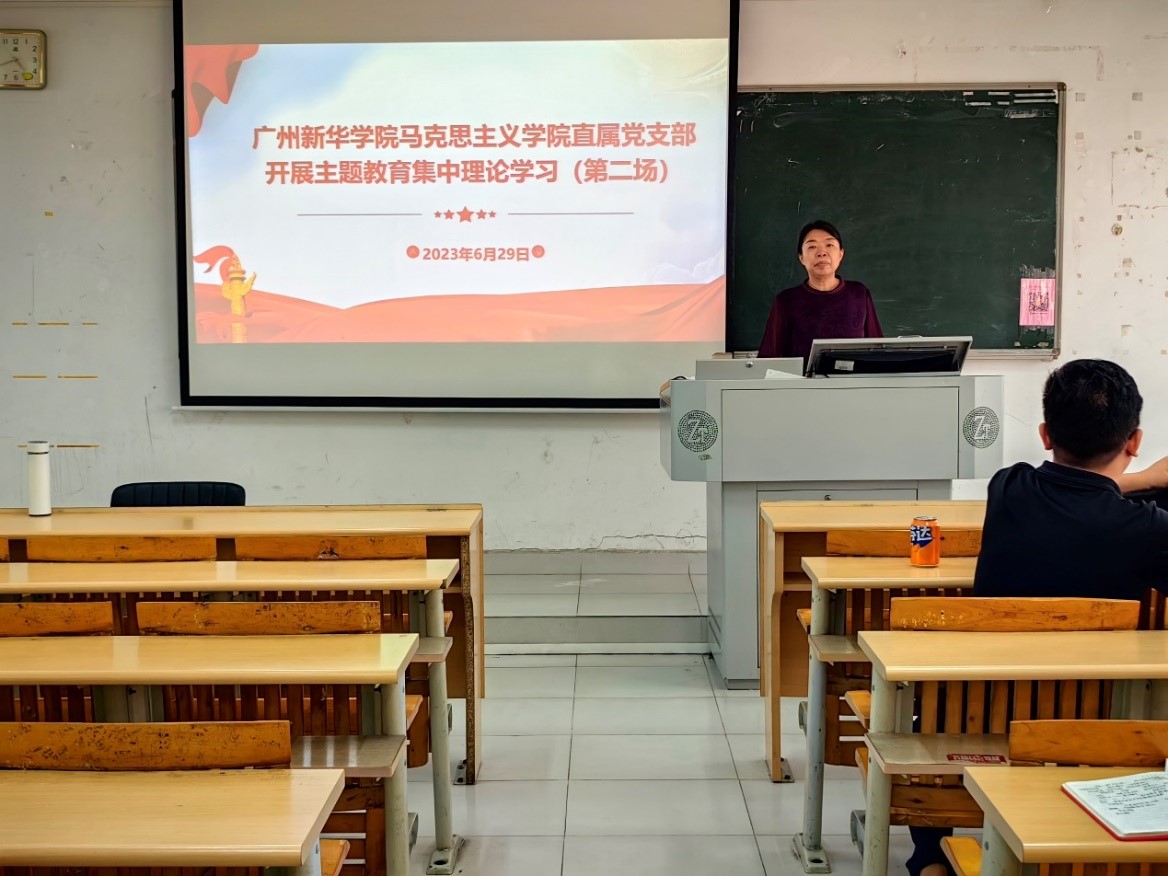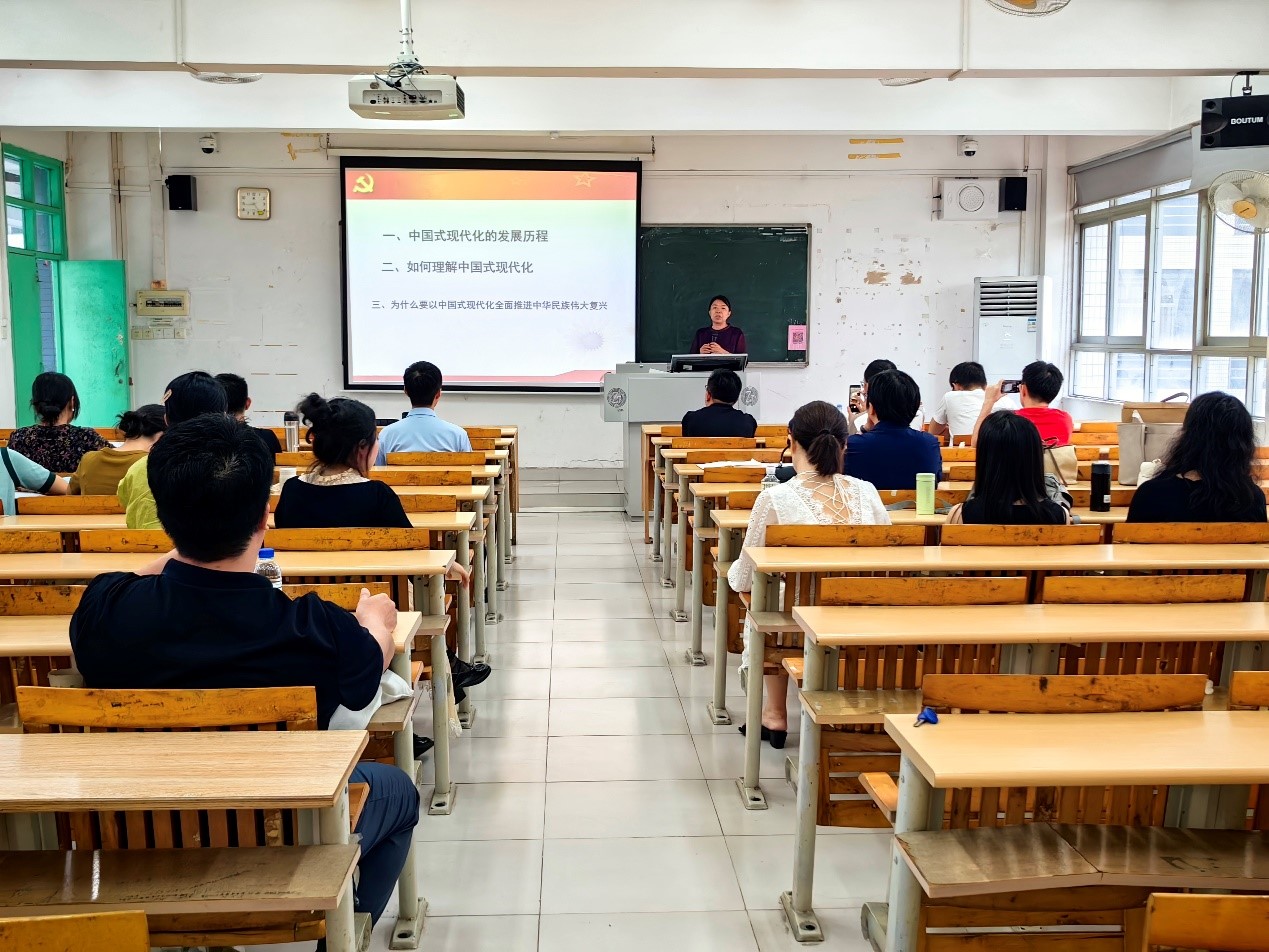 为持续推动学习贯彻习近平新时代中国特色社会主义思想主题教育走深走实,6月29日下午,太阳成集团tyc151cc在广州校区B203开展了学习贯彻习近平新时代中国特色社会主义思想主题教育第二场集中学习,公司周月英副教授作《以中国式现代化全面推进中华民族伟大复兴》专题报告,太阳成集团tyc151cc直属党支部全体党员教师参会学习。