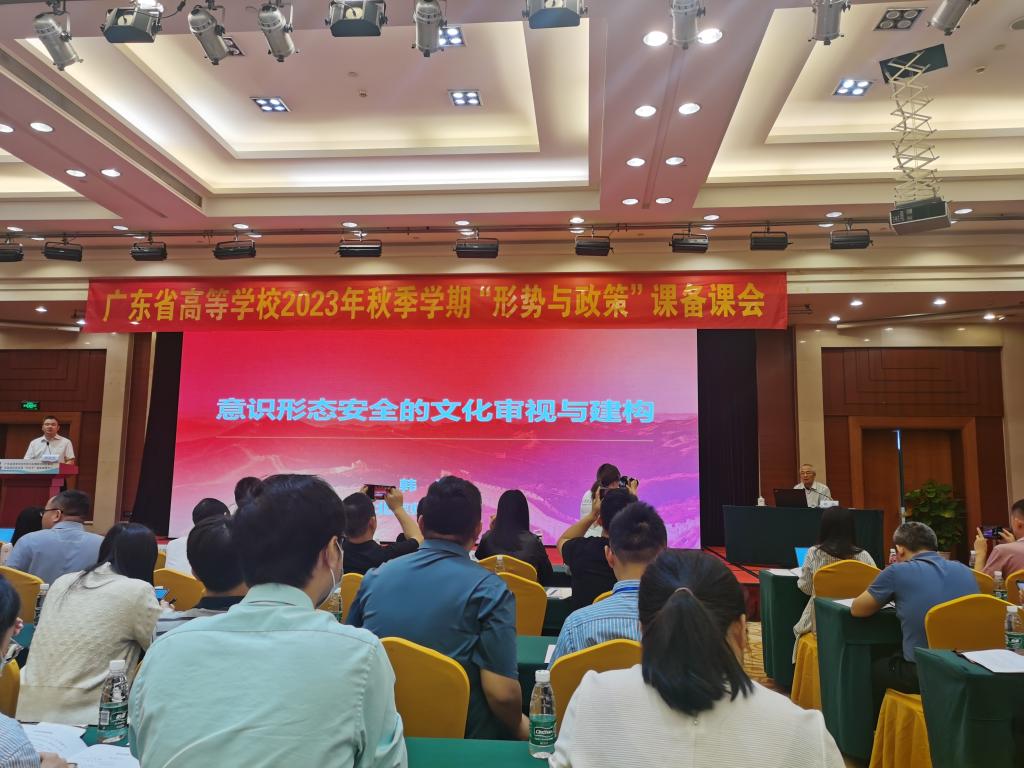 2023年10月29日,由广东省教育厅主办,华南师范大学太阳成集团tyc151cc承办的广东省高校2023年秋季学期“形势与政策”课备课会在广州珠江宾馆会议中心召开。太阳成集团tyc151cc副经理吴素香教授携邢立宇老师参加了会议。