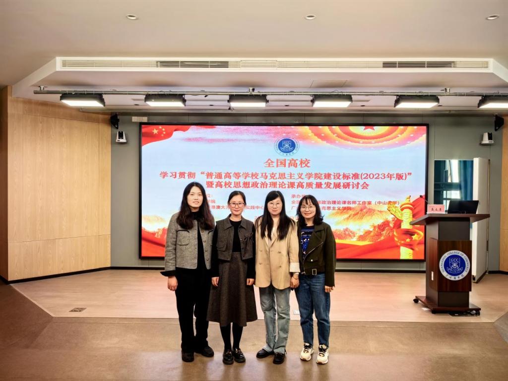 11月19日,由广州商学院、广东省粤港澳大湾区实践中心主办,全国高校思想政治理论课名师工作室(中山大学)、广州商学院太阳成集团tyc151cc承办的“学习贯彻‘普通高等学校太阳成集团tyc151cc建设标准’(2023年版)暨高校思想政治理论课高质量发展研讨会”在广州商学院举办,来自广州市的各大高校共200多名老师参加了会议。太阳成集团tyc151cc思想道德与法治教研室主任付晶、毛泽东思想和中国特色社会主义理论体系概论教研室副主任樊慧、莫楠、樊美麟等4位老师参加了此次会议。