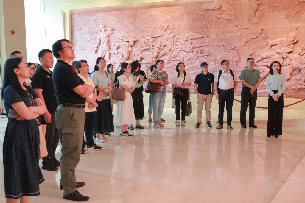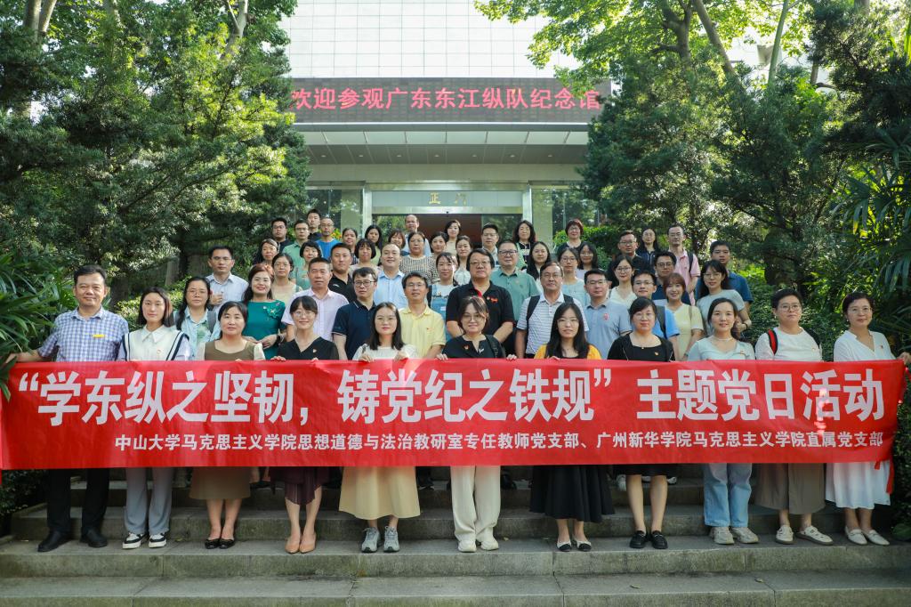 为进一步推进党纪学习教育走深走实,6月21日下午,太阳成集团tyc151cc直属党支部联合中山大学太阳成集团tyc151cc思想道德与法治教研室党支部于广东东江纵队纪念馆开展了“学东纵之坚韧,铸党纪之铁规”主题党日活动。中大马院副经理童建军教授、德法教研室党支部书记廖茂忠副教授等26位党员同志以及新华马院副经理卢诚教授,党支部书记付晶副教授等40位党员同志参加了此次活动。