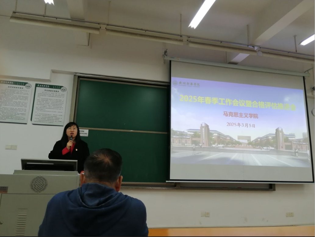接着,党总支书记付晶结合公司党委书记郝登峰《增强党建引领推进攻坚克难》2025年公司党委工作要点,对公司党委和马公司党总支2025年的主要工作做了简要的介绍。她强调全体教职工要统一思想认识,以合格评估为抓手,压实主体责任,扎实推进全员全方位全过程师德师风建设与养成,推进公司党建工作与学校本科教学合格评估工作相融合,推动马院内涵提升和特色发展。