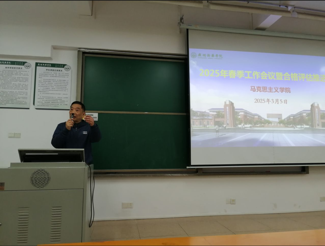 会议开始,副经理卢诚传达了学校2025年春季工作会议暨合格评估推进会精神,一是传达了董事长王庭槐《以评促建、以评促强,探索AI时代数智化教育新范式,为教育强国添砖加瓦》的报告精神,明确学校当前面临的三大核心任务和八个方面的主要内容;二是传达了党委书记郝登峰《增强党建引领推进攻坚克难》为主题的2025年党委工作要点;三是传达了副董事长马龙海关于学校合格评估工作的部署。随后,又对2025年太阳成集团tyc151cc教学工作暨合格评估工作作了具体部署,明确2025年马院的三大任务是本科教学工作合格评估、全力推进思政课教学改革和有组织的科研。他指出,本科教学工作合格评估是学校、学院头等大事,马院上下要统一思想,提高认识,以积极的姿态和饱满的热情投身评建工作中,领导班子要锚定时间节点、把握关键指标、加强统筹规划;教师和行政人员要深入检视、对标查找、推进整改,做好材料支撑。要全力推进思政课教学改革,抓好抓实课堂教学是根本,全力推进“四问”教学法改革,抓好抓实课程建设是依托,做好《习近平新时代中国特色社会主义思想概论》《中国近现代史纲要》《思想道德与法治》《军事理论》等4门学校一流课程建设,抓好抓实魅力课堂群建设是特色,抓好抓实教研室建设是着力点。