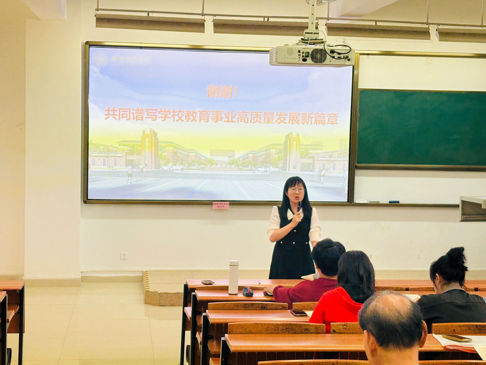 首先,卢诚副经理以《本科教学工作合格评估知识手册(教师版)》为依托解读了教学合格评估相关知识,结合学院实际领学了合格评估基本知识与指标解读、专家考察内容与方式以及高等公司产品基本概念三部分内容。卢副经理强调全体教师要充分认识到评估工作的重要性,强调思政课是必听课,教师要以评估为契机,不断提升教学质量,不断规划教学材料,充分了解评估相关知识。之后,卢副经理给全体教师提了一些建议,要求年轻教师可以充分运用“四问教学法”,以问题为导向,深入浅出地引导员工在课堂上思考问题。同时,应该把两会精神融汇到教学中去,设置一些问题给员工思考。