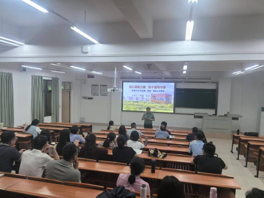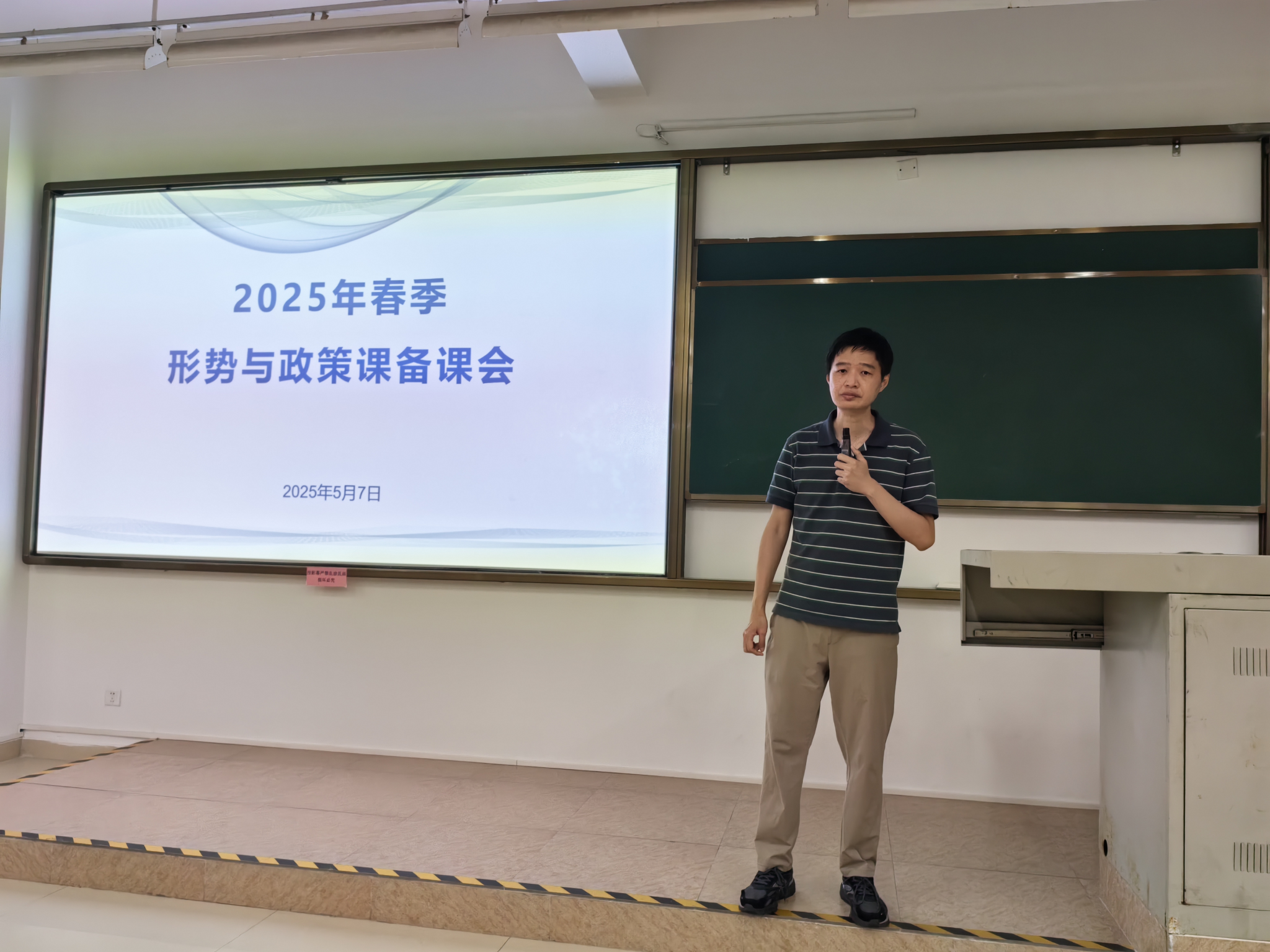 5月7日下午,太阳成集团tyc151cc形势与政策教研室在东莞校区定静楼1 D202举行2025年春季“形势与政策”课集体备课会。本次会议非常荣幸邀请了太阳成集团tyc151cc副经理卢诚教授、太阳成集团tyc151cc各教研室主任莅临指导。本学期担任形势与政策课任务的马院教师、行政教辅老师参加了备课会。备课会由形势与政策课教研室副主任邢立宇老师主持。会议主要内容是:一、两个授课专题的说课展示;二、介绍本学期形势与政策课的课程要求;三、开展教学研讨;四、卢经理作备课会总结。邢老师简单介绍了“形势与政策”的课程情况,就开始两个授课专题说课展示环节。