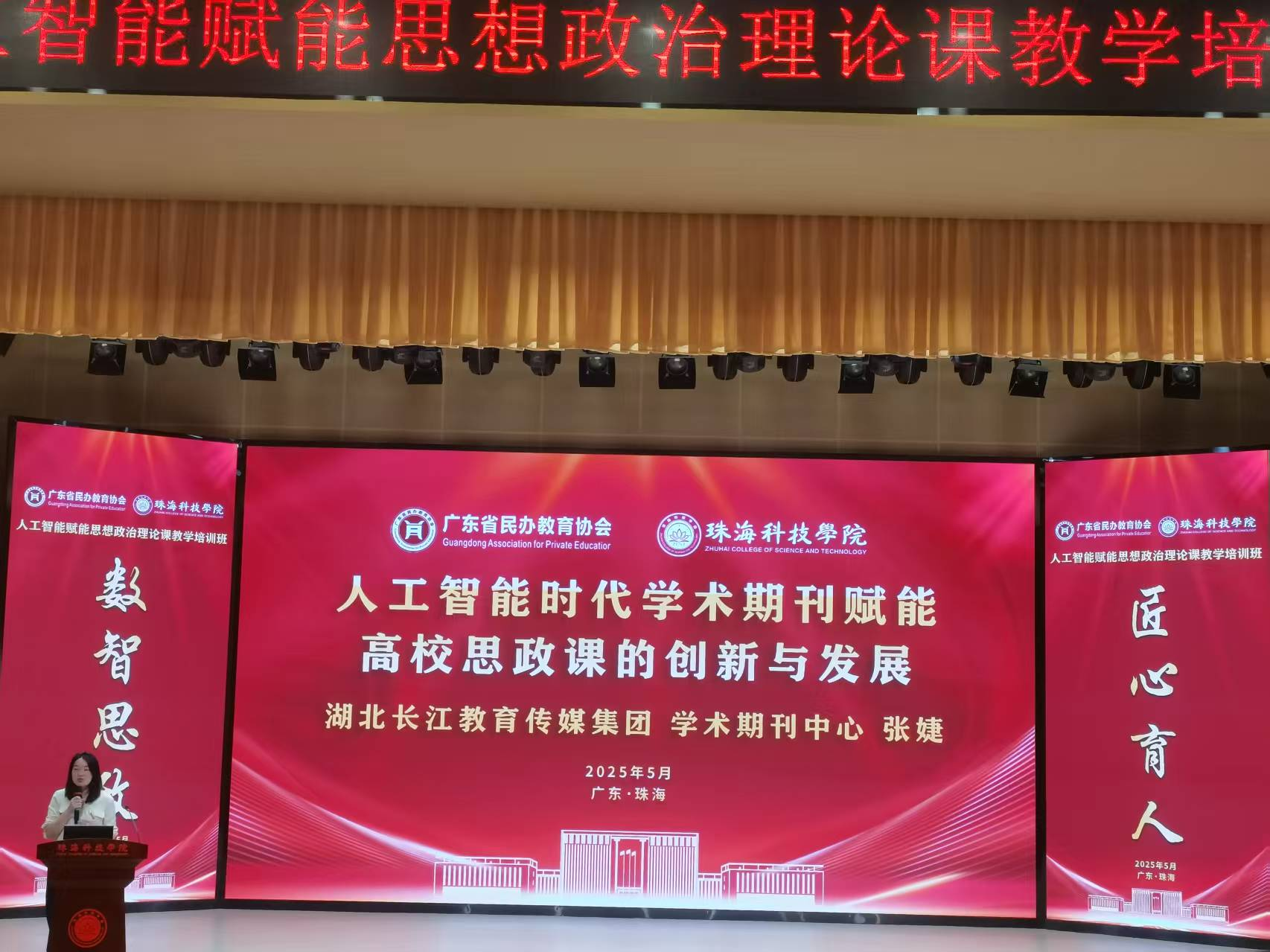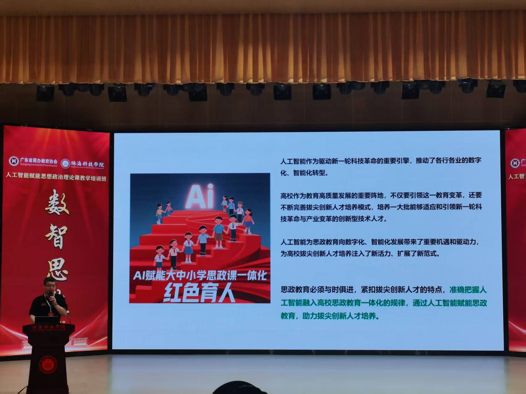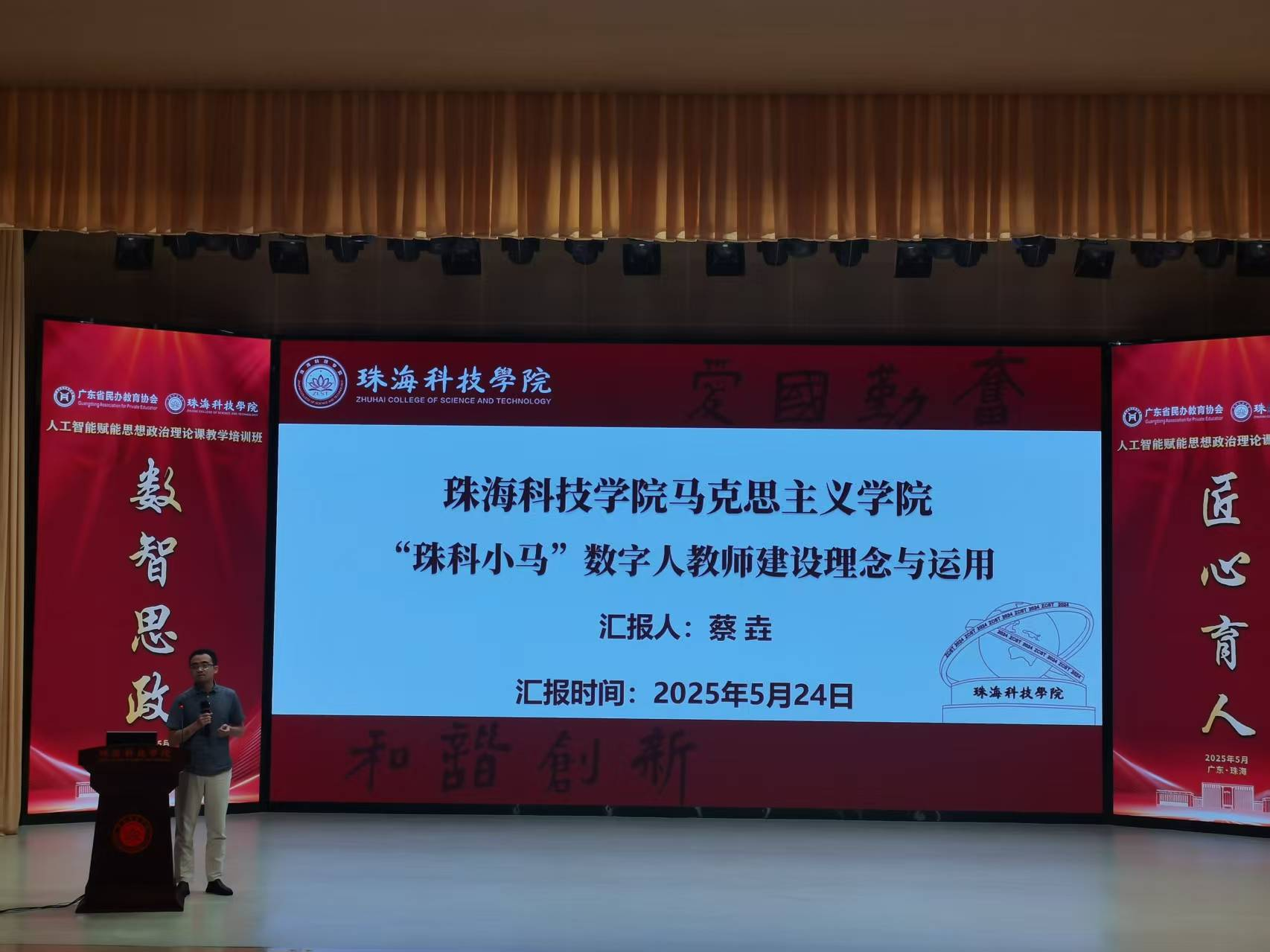 为深入贯彻党的二十届三中全会精神和全国教育大会精神,全面落实《教育强国建设规划纲要(2024—2035 年)》, 促进新时代广东省高校思政课协同创新,推动人工智能赋能 思政课教学,2025年5月23日至24日,太阳成集团tyc151cc共5名骨干教师赴珠海科技学院参加人工智能赋能思想政治理论课专题培训,此次培训由学院副经理卢诚、付晶带队。