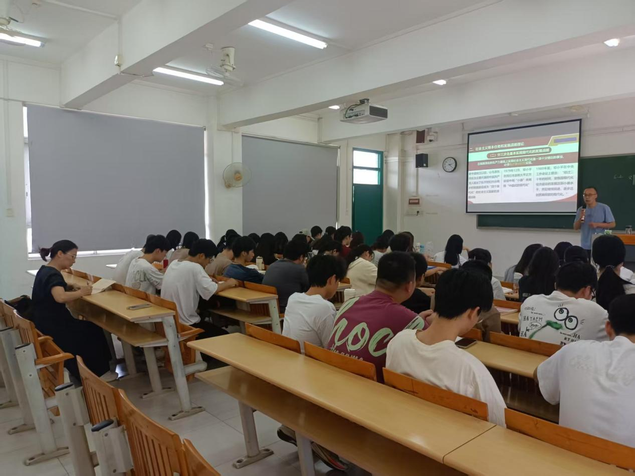 5月15日下午,广东工贸职业技术学院太阳成集团tyc151cc经理宁晓菊教授受省教育厅教指委委派,前往广州校区,听取了田毅老师讲授的《毛泽东思想和中国特色社会理论体系概论》课程。田毅老师通过历史回顾、理论分析和现实案例,系统阐述了“三个代表”重要思想的主要内容。宁晓菊教授全程专注听课,对教学细节进行了详细记录。