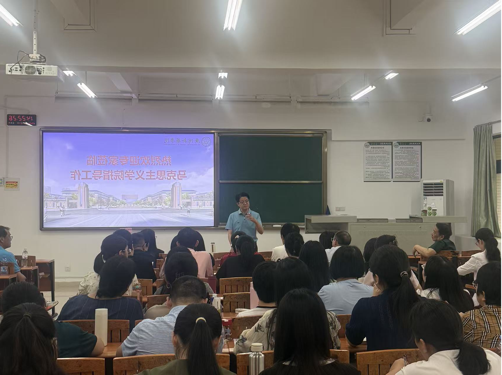 随后,郝登峰书记在会上强调了马院在学校本科教学工作合格评估的重要地位,马院是必查的院系,要求老师上课需要进一步打磨,同时,务必加强员工的课堂管理。此外,郝书记对马院全体教师提出了两个要求,一是知道,指的是全体教师务必领悟学校精神,把学校的评估手册内容弄通搞熟,二是做到,全体教师应该备好课,服从工作安排,为评估工作做好一切准备。