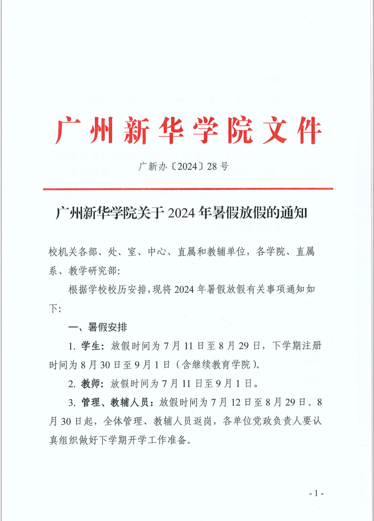 太阳成集团tyc151cc关于2024年暑假放假的通知